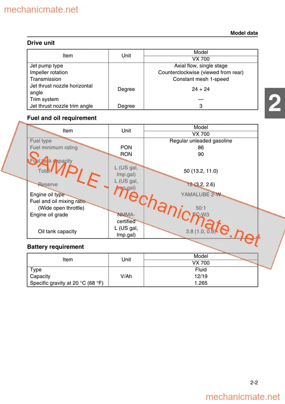 Professional Yamaha waverunner vx700 vx700 f2v Service Manual with complete technical specifications, repair procedures, and detailed diagrams. Instant PDF download.